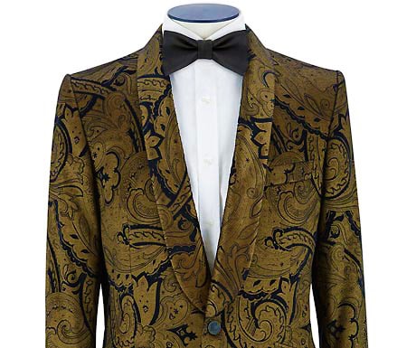 Duchamp’s Evening Edit range features a selection of velvet tux jackets that are just that and this gold paisley print reinvents the traditional tux in a show-stealing way but at the same time still manages to exude British gentleman chic.