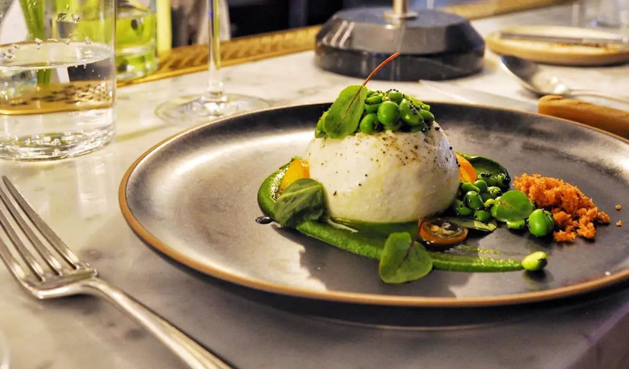 Great flavours are all about the balance that is created to complement one another; the slight tanginess from the rhubarb offsets the heaviness of the Foie Gras – perfect! Next came the Burrata which was served with a pea purée.